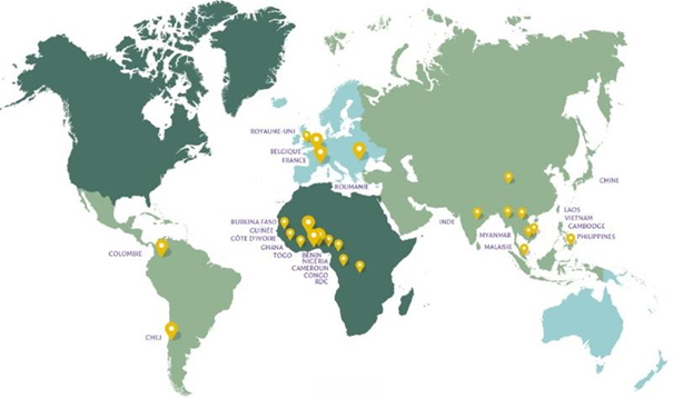 IFF Europe est actif en France, à Angers, depuis 1985 et en Belgique, à Louvain-la-Neuve, depuis 2017. IFF Afrique est installé à Lomé au Togo depuis 1985, IFF Asia à Manille aux Philippines depuis 2002 et IFF America à Santiago au Chili depuis 2014.